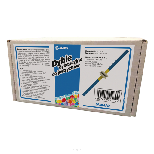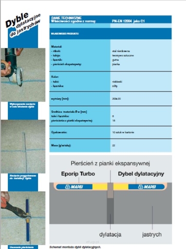 Elastyczny dybel dylatacyjny, zapobiegający uszkodzeniom podłogi w obrębie dylatacji.